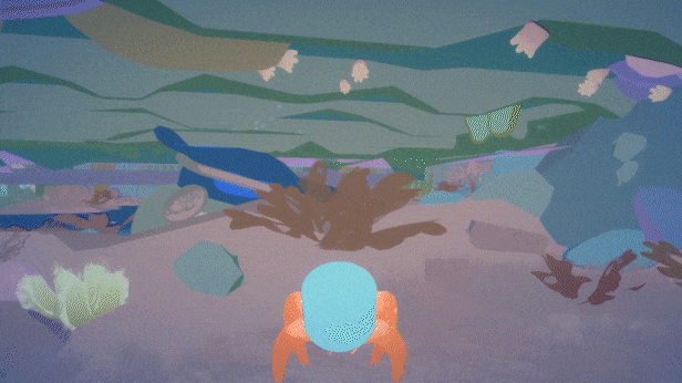 The core experience is a 3D 3rd person platformer, where you play as a hermit crab exploring the environment of an underwater house. This has involved building my own custom physics system, procedural animation (for 6 legs and 8 on an octopus) and creature herding mechanics. For visuals, I have built a custom toon lighting model, dynamic grass shader, caustics, and bubble particles. For UI, I built a custom text reader and bestiary interface. For music and SFX a playback system. These systems function on both console controllers and PC.